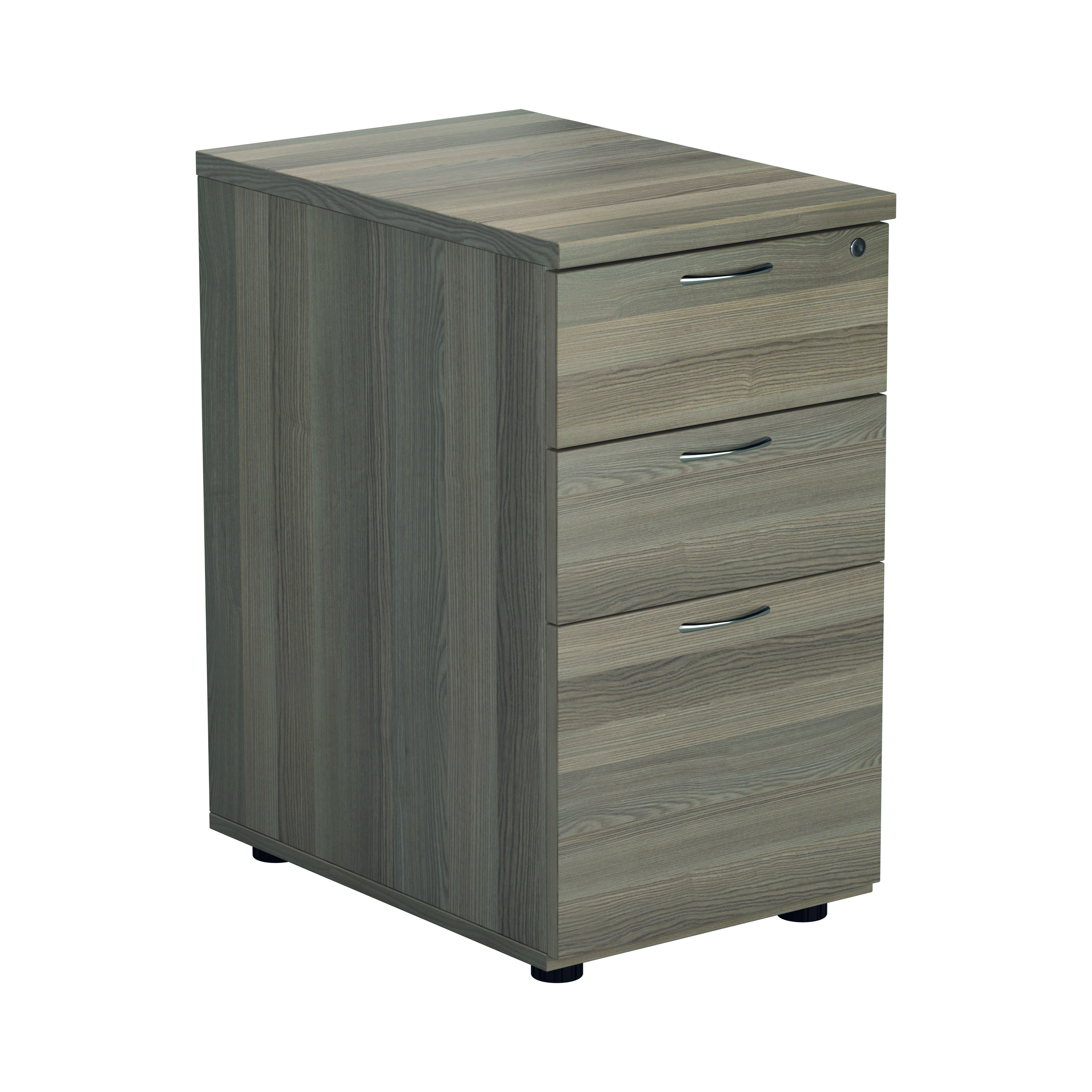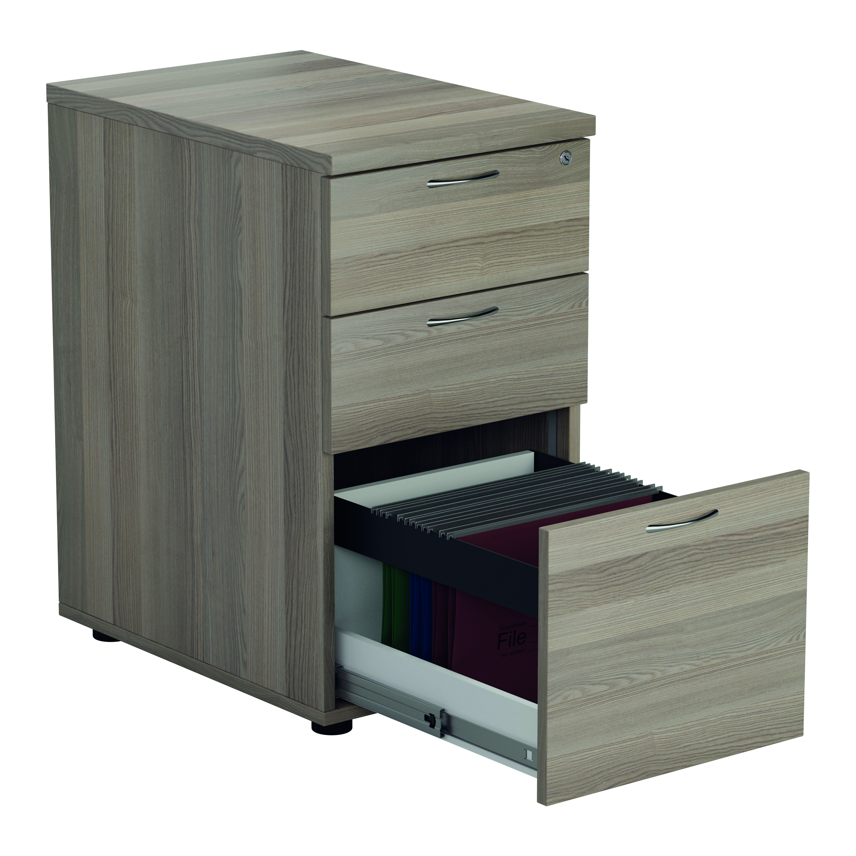 Jemini Radial Left Hand Desk 1600x800-1200x730mm Grey Oak/Silver 600mm Desk High Pedestal KF822671