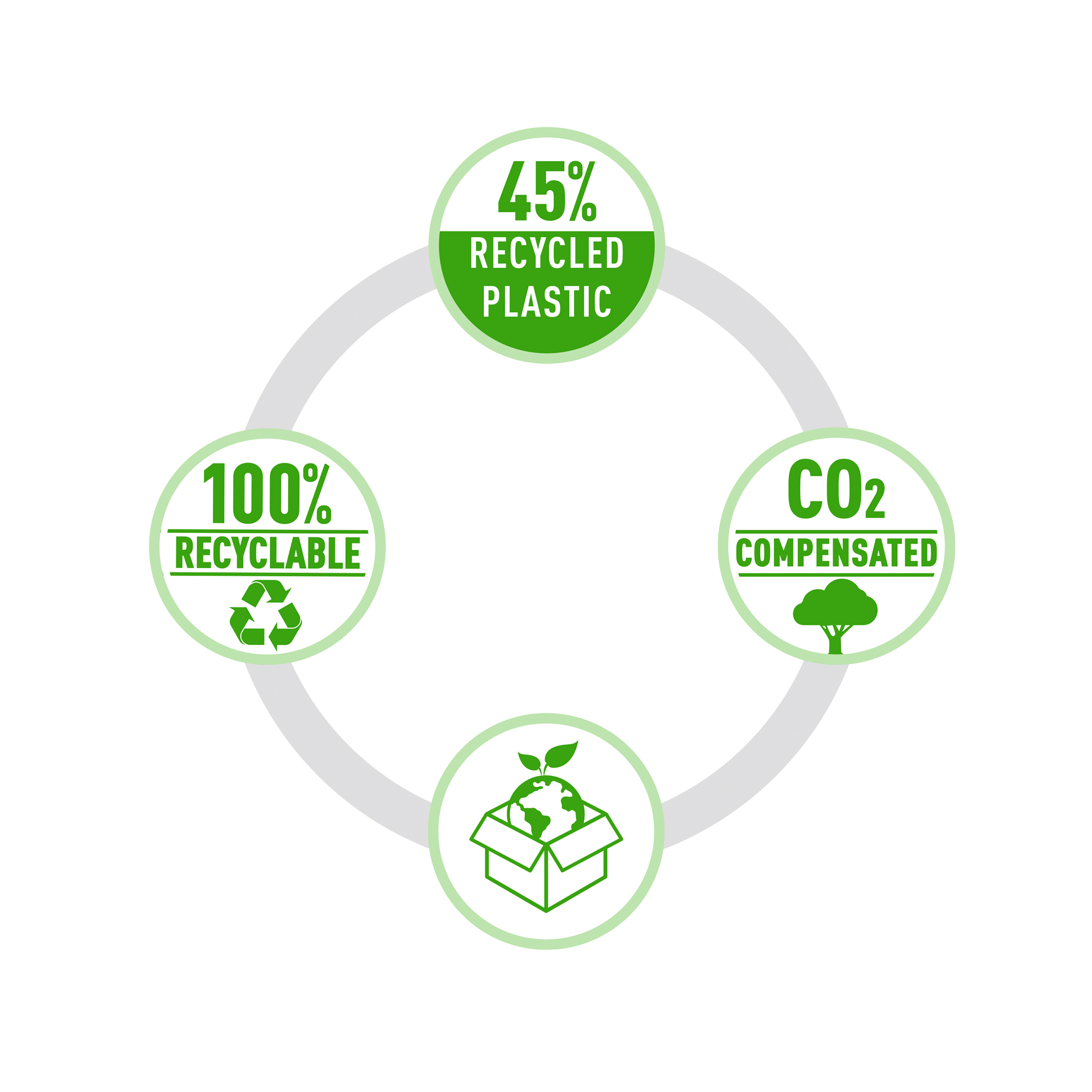 - Eco friendly packaging with 67% recycled cardboard box, fully recyclable