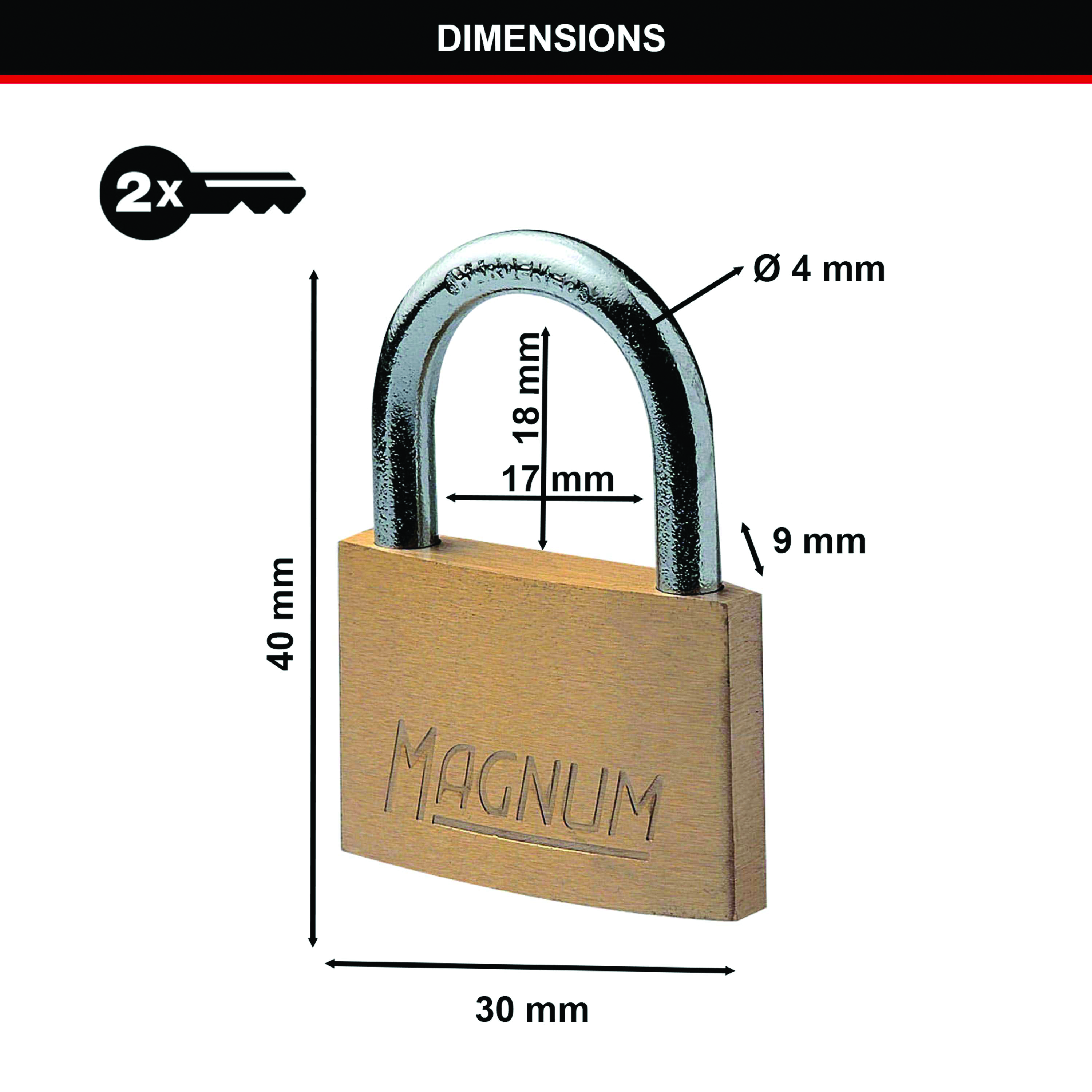 Master Lock Magnum Padlock 30mm Solid Brass with Keys 40043